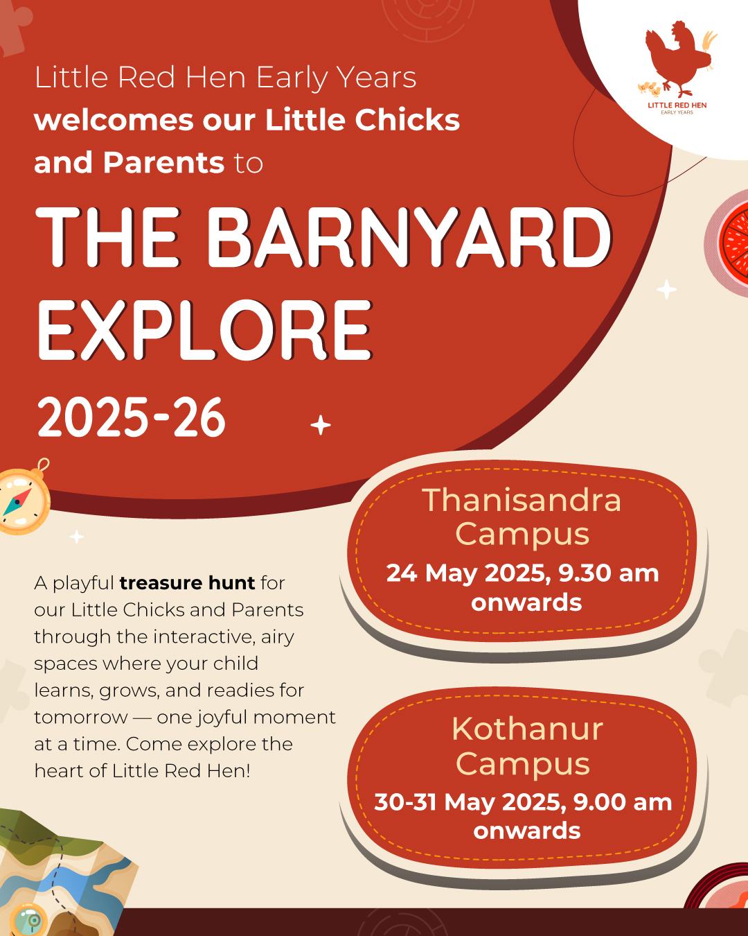 The Barnyard Event 2025 at Little Red Hen was a joyful way to begin the new school year. Designed as a treasure hunt, it gave parents a chance to walk through the different corners of the preschool curriculum with their children, discovering how each space nurtures growth, creativity, and confidence. Here’s a glimpse of what they explored together: